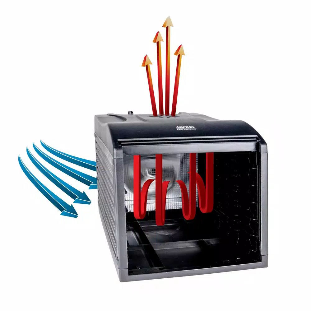 Enjoy all your homemade dried favorites with the AROMA Food Dehydrator. Perfect for everyone from outdoor hobbyists to the health-conscious, this dehydrator is designed for efficient, even drying. Fruit leather. Trail Mix. Custom potpourri. Dried Herbs and Spices. Prepare all this and more with the flip of a switch. It handles everything from fruit slices to beef jerky on six spacious, height adjustable trays. The automatic fan promotes even drying and prevents the overheating that eliminates food’s vital nutrients while the adjustable thermostat ensures that all foods are dehydrated at their optimal temperature.