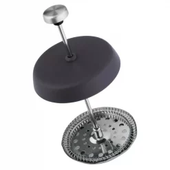 The BergHOFF French press is a cylindrical pot with a plunger and a built-in filter screen that presses hot water onto tea leaves or ground coffee. When you choose the French press to create a delicious cup of coffee or tea, youre sure youre using a reliable and consistent method thats ideal for making several cups in just a few minutes. Makes 0.37 quarts. Constructed of stainless steel with a glass carafe and is dishwasher safe. This French press is the perfect addition to any kitchen!