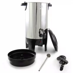 The Better Chef 10-50 Cup Coffeemaker features a stainless-steel construction for fresher tasting coffee and easier cleanup. Makes coffee, tea, hot water for hot cocoa for parties and events. The non-drip spigot ensures for mess free serving to your guests. With the twist-to-lock cover you can be sure that the hot contents will stay put.