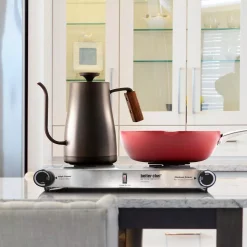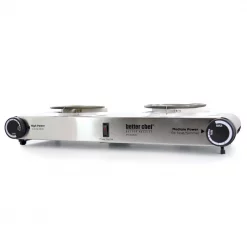 Ever need an extra burner during holiday cooking? Having company and need to keep something warm? Do crafts and not want to mess up your kitchen? The Better Chef Stainless Steel Dual Electric Burner is just the ticket! This dual burner features an adjustable temperature thermostat control to ensure you cook your next great meal at just the right temperature. The beautiful brushed stainless-steel finish will add a sleek look to your countertops.