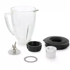 The Better Chef 6 piece Complete 48 Oz Round Blender Glass Jar Replacement Kit will provide you with everything you need to replace that small blender jar. Included in this set is one 48 ounce glass jar, one bottom cap, one rubber gasket, one blender blade, one lid, and one filler cap so you have everything you need to make the swap. This 6 piece kit is compatible with most Oster blender models. Upgrade your home blender for bigger and better creations.
