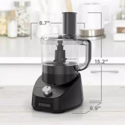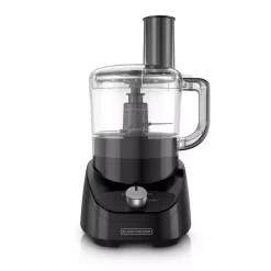 Just set and go for chopping, shredding, slicing, and more. The BLACK+DECKER 3-in-1 Easy Assembly 8-Cup Food Processor is designed for convenience-just set the work bowl onto the base and twist the lid until it locks into place. The S-blade is perfect for chopping and mixing, and the dual-sided disc delivers easy slicing and shredding. Choose from two speeds and a pulse setting to reach optimal results for all types of foods. The 8-cup work bowl accommodates large quantities, and all removable parts are dishwasher-safe so cleanup is fast and easy.