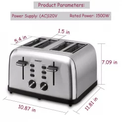 - γ4 EXTRA-WIDE SLOTS FOR TOASTING BREADγ: Slots dimensions 1.5βx5.4β, Four toasting slots with two independent units, one lift controls two slots and dual independently control panel for four slots at the same time. You may choose both combinations that you like and make as much toast as you need in each time. Be faster and more efficient!