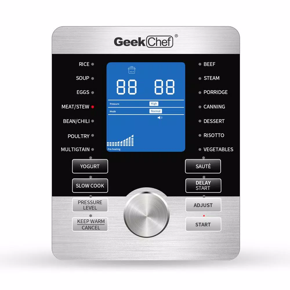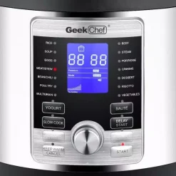 - γ17 PRESET SMART PROGRAMS IN1γGeek Chef provides you the flexibility to manually input cooking times when required and you also have the pre-programmed smart programs already set for many dishes such as Rice, Soup, Eggs, Meat/Stew, Bean/Chili, Poultry, Multigrain, Beef, Steam, Porridge, Canning, Dessert, Risotto, Vegetables, Yogurt, Slow Cook, and Saute.
