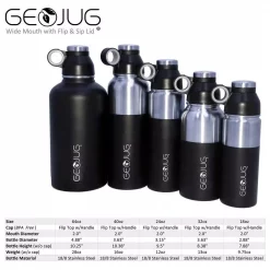 - Water bottle features tasteless, odorless 18/8 stainless steel, an extra wide mouth and a slip free powder coat finish
