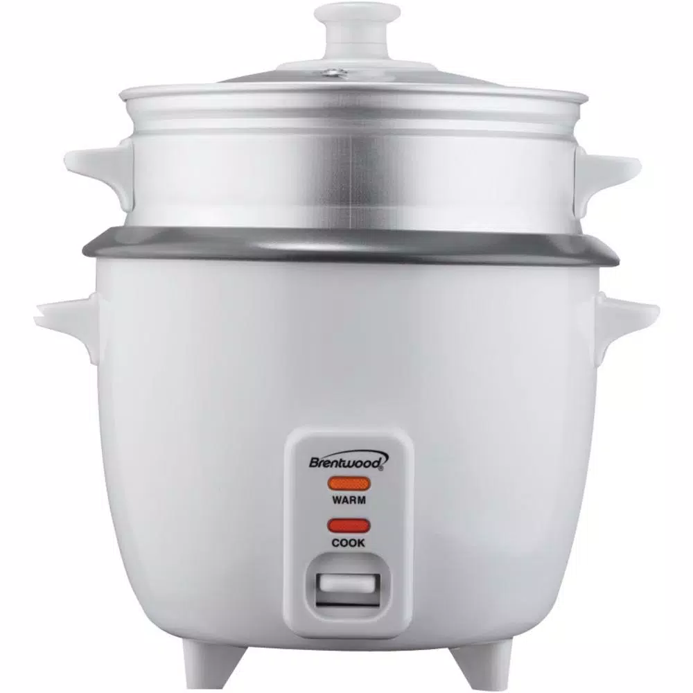 The powerful 400-Watt Brentwood Appliances TS-600S 5-Cup Rice Cooker and Food Steamer steams meats and veggies while rice cooks. You can also heat chili, soups and more. This rice cooker features 1-touch operation with auto warming, a removable, nonstick pot and cool-touch handles. It even includes a measuring cup and serving paddle just add your ingredients.