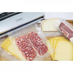 CASO Design specializes in unique, innovative products that exceed expectations with German design and engineering. The Caso VC 10 food vacuum sealer includes a food management app with labeling system that is the best way to store and organize your food. Plus, you receive a set of 2 food vacuum rolls (part #11221) with the purchase of a VC 10. Vacuum sealing foods prolongs shelf life while preserving foods freshness, flavor and nutrients. Keep foods fresh up to five times longer than standard storage methods. Use for meat, fish, vegetables, hard cheese, and dry goods. Eliminate food waste and save money by embracing a more sustainable way to manage your food. Perfect for sous vide cooking, pair this food vacuum sealer with our Sous Vide Cooking Stick (sold separately) to cook healthier, juicier, tastier meals.