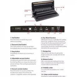 CASO Design specializes in unique, innovative products that exceed expectations with German design and engineering. The Caso VC 350 food vacuum sealer all-in-one system features an adjustable vacuum level for delicate foods, a selectable sealing time for wet or dry foods, plus an integrated fold-out cutter for faster processing. It includes one 8-inch film roll, one 11-inch film roll, a roll box, a food vacuum hose, and a food management app with labeling system. Vacuum sealing foods prolongs shelf life while preserving food’s freshness, flavor and nutrients. The best way to store and organize your food, it keeps food fresh up to five times longer than standard storage methods. Use for meat, fish, vegetables, hard cheese, dry goods, and more. Eliminate food waste and save money by embracing a more sustainable way to manage your food. Perfect for sous vide cooking, pair this food vacuum sealer with our Sous Vide Cooking Stick (sold separately) to cook healthier, juicier, tastier meals.