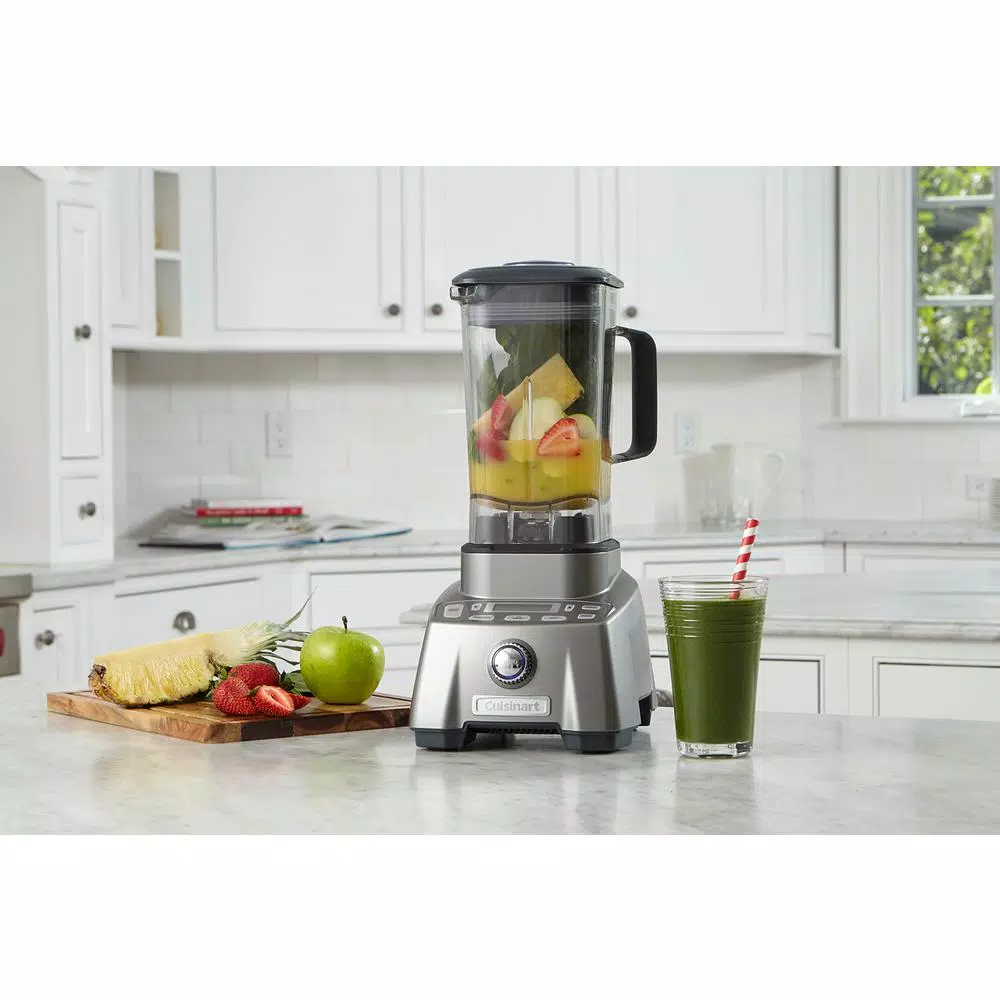 Cuisinart introduces its most powerful blender ever. The Hurricane Pro has a commercially rated 3.5 Peak HP motor and professional features that let it outperform every blender in its class. Innovative BlendLogix technology ensures consistent blending speeds regardless of density or volume of ingredients, and the memory function lets users adjust preset times and then remembers the new settings. A variable speed control (3,000 to 25,000), a 30,000 Turbo Boost feature, and the 6-prong stainless steel blade ensure everything that goes into the extra-large, 64 oz., BPA-free Tritan jar is blended to perfection.
