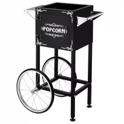 Add the Popcorn Machine Cart by Great Northern Popcorn to your existing popper for smooth mobility and a carnival style look. This replacement cart is sure to be the hit of your next party, school function or social event with its working side shelf, push handle and 16 in. bicycle style wheels. This popcorn machine trolley provides an attractive stand for your existing Great Northern Popcorn popper (sold separately) with a base measurement of 12 in. x 15 in. The handy cabinet will keep your popcorn supplies neatly stored inside and ready for movie nights or game time snacks.
