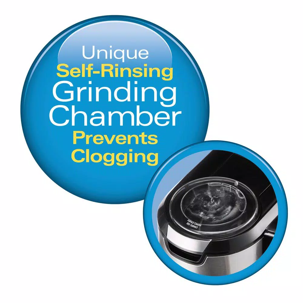 - Self-rinsing grinding chamber keeps parts clean for easy care and long-lasting performance