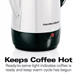 The classic way to make fast, flavor-rich coffee. Itβs no wonder percolators continue to be a popular choice for brewing coffee despite all the options β perked coffee is consistently rich and robust in flavor. The Hamilton Beach 12-Cup Stainless Steel Percolator makes this distinctly bold, piping-hot coffee in very little time. This attractive percolator can brew up to 12-cups in less than a minute per cup. A gentle keep warm heater maintains your coffeeβs temperature and its fresh taste. The detachable cord and cool touch handle make it perfect for easy and elegant tabletop serving. A ready-to-serve light lets you know when brewing is complete and keep warm has started. The included permanent stainless steel filter basket goes right in the dishwasher for easy cleanup.