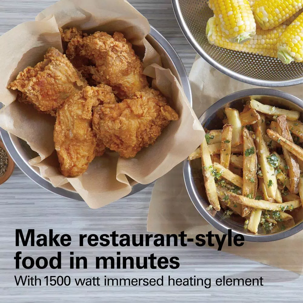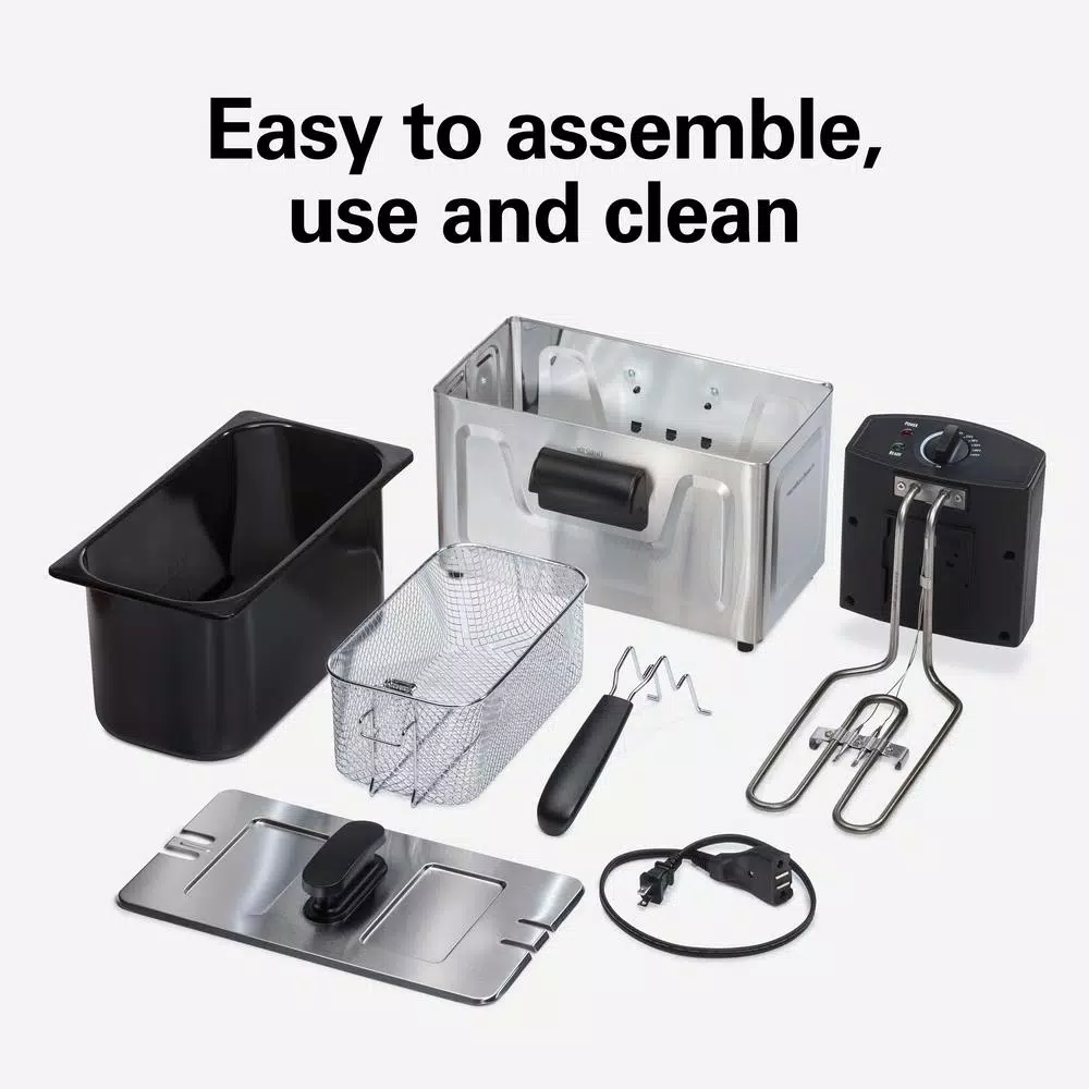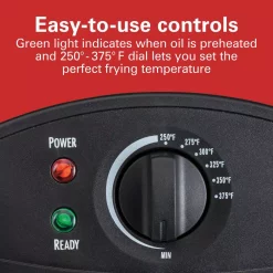 With the Hamilton Beach 12-Cup Deep Fryer, you can fry up to 8-cups of restaurant-quality chicken, fries or onion rings in the comfort of your own home. You ft. ll find it easy to use, even if you havve never attempted to deep-fry food before. Simply preheat the oil until the green ready light comes on, fill the basket with food without overcrowding it, lower the basket into the oil and cover with the lid. When food is finished frying, hook the basket over the oil tank to easily remove excess oil from your food. For easy cleaning, the enamel-coated oil tank, cooking basket and lid are dishwasher safe. For added convenience when you are frying, the magnetic cord easily detaches from the deep fryer to prevent tipping.
