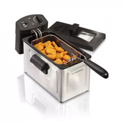 Hamilton Beach Deep Fryers are generously sized for greater versatility β some even accommodating a whole chicken. Whatβs more, you can fry crispy, mouth-watering foods without the mess youβve come to expect. Food can be lowered into hot oil and lifted out while the lid is closed for splatter-free frying. Hamilton Beach Deep Fryers also feature adjustable heat and convenient timers. Hamilton Beach Consumer Deep Fryers for the home are easy to clean and most models include a dishwasher-safe nonstick pot. The breakaway cord featured on most deep fryers makes storage easy too. If your unit is not heating or will not turn on, your unit may need to be reset 1 Make sure fryer and oil are cold, 2 Turn temperature control to minimum, 3 Unplug magnetic cord from the wall outlet, 4 Remove removable control panel and heater element, 5 Use a thin pointed object such as a wooden skewer or thin screwdriver to push in reset.