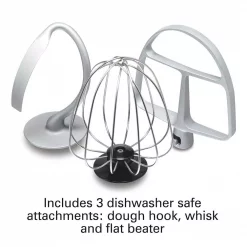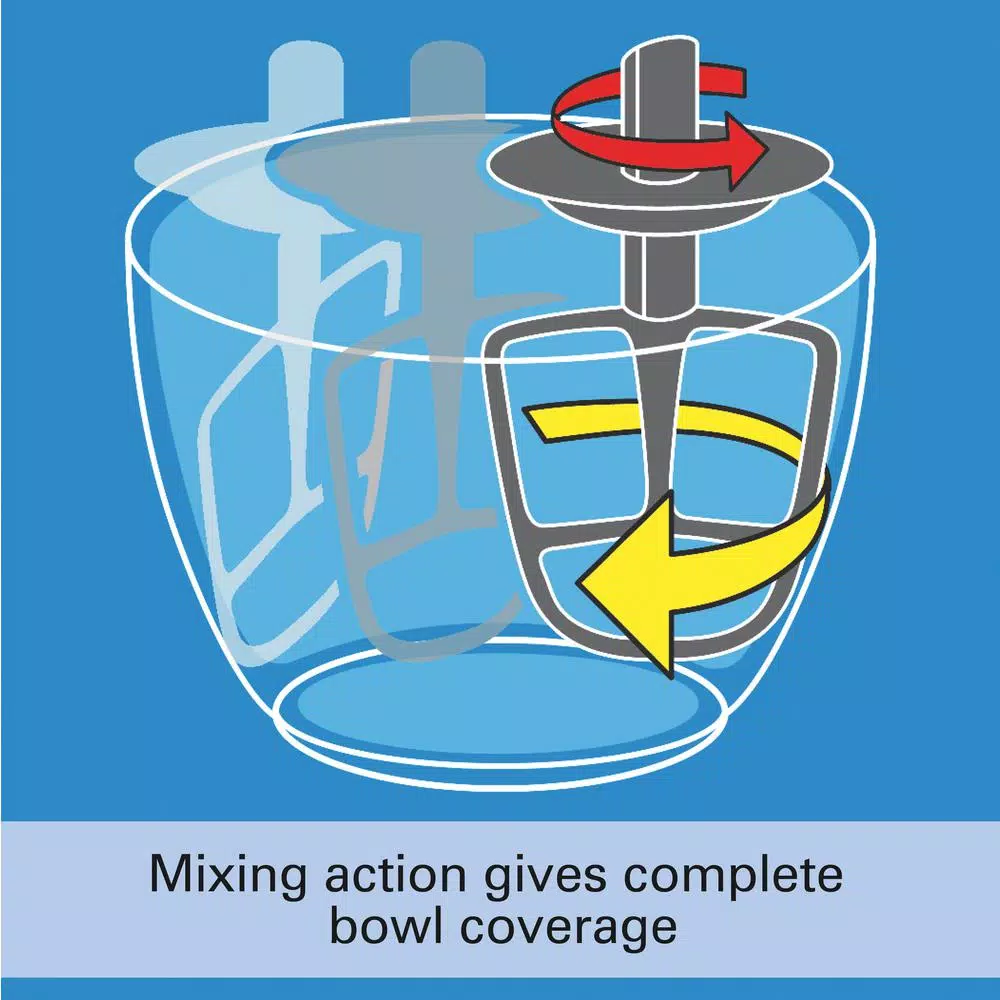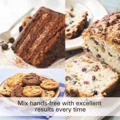 Hamilton Beach Stand Mixer Hands-free mixing with complete bowl coverage Built for a variety of batters and mixes, this Hamilton Beach Stand Mixer can do everything from whip delicate meringues to mix sticky bread dough. The powerful 300 watt motor can handle the thickest of ingredients, including those peanut butter chocolate chip cookies your family devours. And the best part is, you never have to scrape the bowl or hand-mix at the end – the planetary mixing action rotates the beaters around the entire bowl, for even and complete mixing. Seven speeds lets you go from a slow stir to a fast mix, with exact control at each one. Plus, a helpful guide at the mixer’s top lets you know which speed to use for various mixing methods. Nonslip feet keep the mixer still while in use, and the splatter shield guards against messy drips, drops and spills. Attachments include a flat beater, dough hook and whisk. All attachments, as well as the stainless steel 4-quart mixing bowl, are dishwasher safe for fast cleanup.