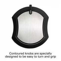 You wont find a design like the Hamilton Beach Easy Reach Toaster Oven with Roll-Top Door anywhere else. Its unique and large opening makes food easy to reach. And since the door opens above the oven, it frees up your countertop space in front. Best of all, its easy to keep clean because food cant spill on the door. Contoured dials are easy to grip and turn, making it simple to switch between bake, broil and toast settings. The stay-on setting is safer thanks to a stop mechanism that prevents the knob from being turned to stay-on by accident.