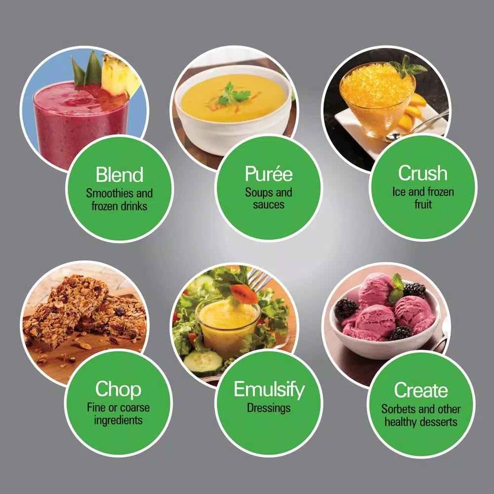 - 4-program settings: smoothie, ice crush, pure and clean for 1-touch convenience and easy cleanup