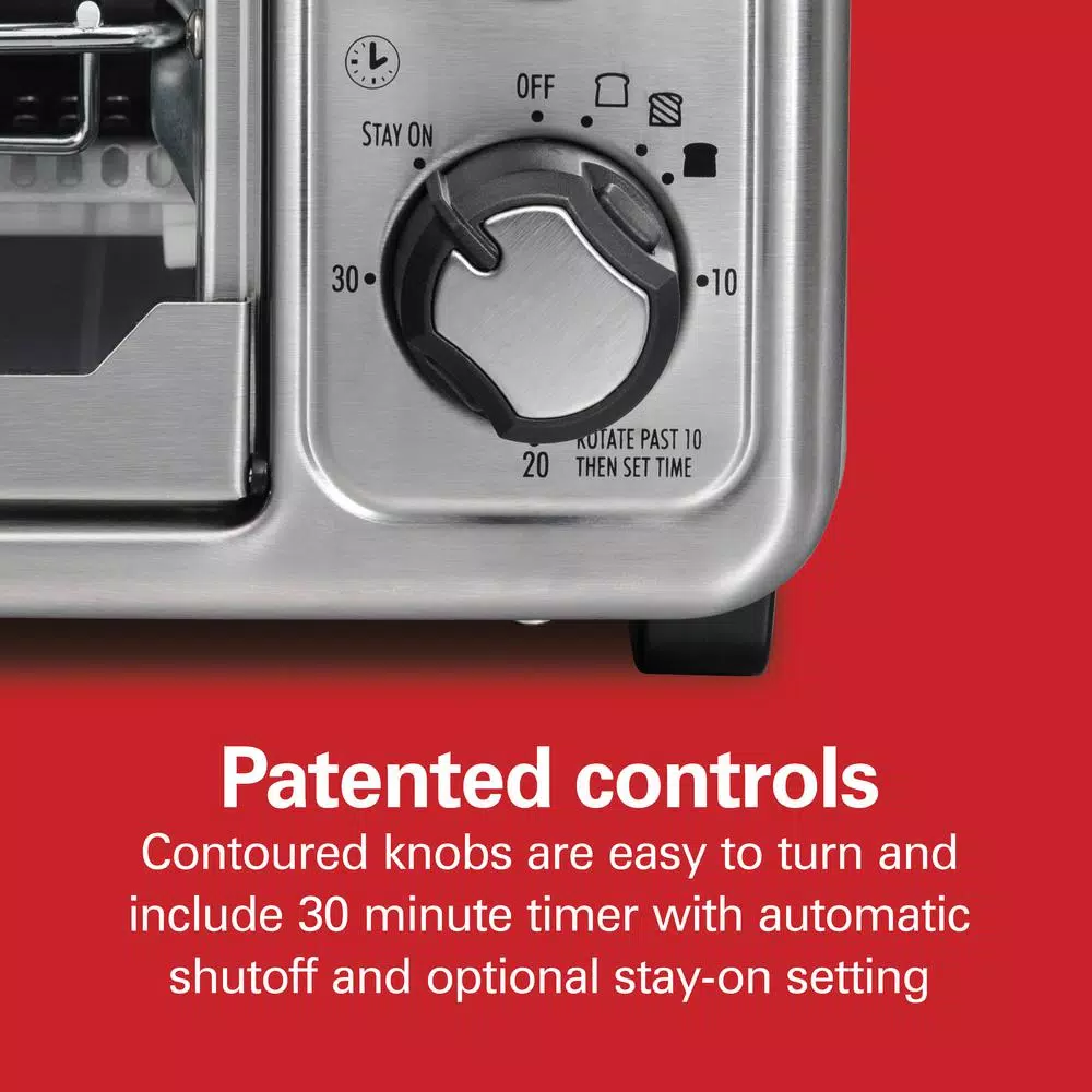 The Hamilton Beach Sure-Crisp Air Fryer Toaster Oven combines Sure-Crisp air frying functionality with the versatility of a classic toaster oven. You get the even crisping and browning of air frying right on your countertop, along with the ability to toast, bake and broil. Using little to no oil, the Sure-Crisp function turns fresh or frozen French fries, chicken wings, steaks, fish, vegetables and more into crispy deliciousness that you and your family will love. Itβs easy to use β just add food to the mesh basket without overcrowding it, slide it into the oven and place the bake pan underneath. As a toaster oven, it fits 6 slices of toast, a 12 in. pizza, a 5 lb. chicken or a 9 in. x 11 in. baking pan. Three rack positions let you adjust or remove the racks as needed. Other convenient features include a 30-minute timer with automatic shutoff, ready bell and stay-on setting. The Hamilton Beach Sure-Crisp Air Fryer Toaster Oven comes with all the accessories you need to bake, broil, toast and air fry, including a metal basket, bake pan, broil rack and slide-out crumb tray.
