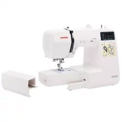 The Janome JW8100 computerized sewing machine is the perfect machine to tackle your next sewing project. The machines cutting-edge technology ensure that projects are conquered with power, precision and confidence. Utilize the Janome JW8100sewing machines built-in needle threader, presser foot lift, auto-declutch bobbin winder and 7 mm stitch width. The backlit LCD screen with easy navigation buttons make choosing stitches a breeze. The Easy Convenience buttons are located right by the needle, youβll find a start/stop button for sewing without the foot control and a reverse button. There is also a locking stitch button and needle up/down button. The Janome JW8100 advanced sewing machine features basic technology that is perfect for the starting DIY sawist, but can handle a variety of tasks demanded from an experienced user. Bonus Accessories like the Extra-Wide Extension Table, Hard Cover, Even Feed Foot and Quarter Inch Foot provide you with a great value bundle.