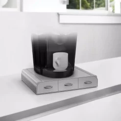 Forget the cheap wire mesh holders with sticky drawers and flimsy construction that eventually sag. This holder is built to last with attention to detail and superior materials. The patent-pending heat-resistant panel means you can safely place your coffee machine directly on top of the drawer without worrying that it will eventually sag or that the heat will compromise the coffee pods underneath.