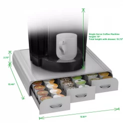 - Place your single serve coffee machine on top to save valuable counter space