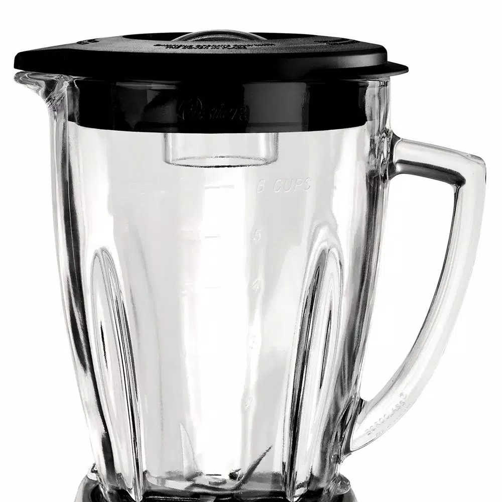 Beautifully housed in metallic silver, this stunning blender by Oster provides way more than good looks. A useful tool for everyday blending, the countertop blender is versatile, easy to use and designed to inspire. The generous 6-cup capacity can hold large ingredients and serve party sized portions. The Stainless steel ice crusher blade for perfectly crushed ice every time. Take advantage of the 800 watt 6 speed motor as you blend, liquefy, pulse, crush ice and more.
