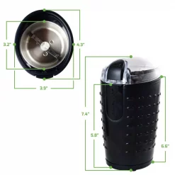 - Efficient β Powered by 120V and 150-Watt motor, it grinds fast while preserving aromatic flavors from coffee beans, herbs, spices, grains, etc. It can hold up to 2.5oz (70g).
