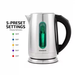 - Quickly works for you β 120-Volt, 1100-Watts of power quickly brings water (up to 1.7L) to a rolling boil within 7 minutes or less, this kettle also features electronic temperature control and a 2-hour keep-warm function.