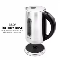 - Extra safe β features boil-dry protection which shuts off the kettle when no water is inside. Also includes a convenient non-slip 360 rotary base, a secure locking lid, and a comfortable stay-cool handle for extra security.