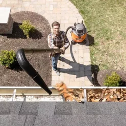 - Includes: gutter elbow, 2 locking extension wands, blower nozzle, male-to-male adapter